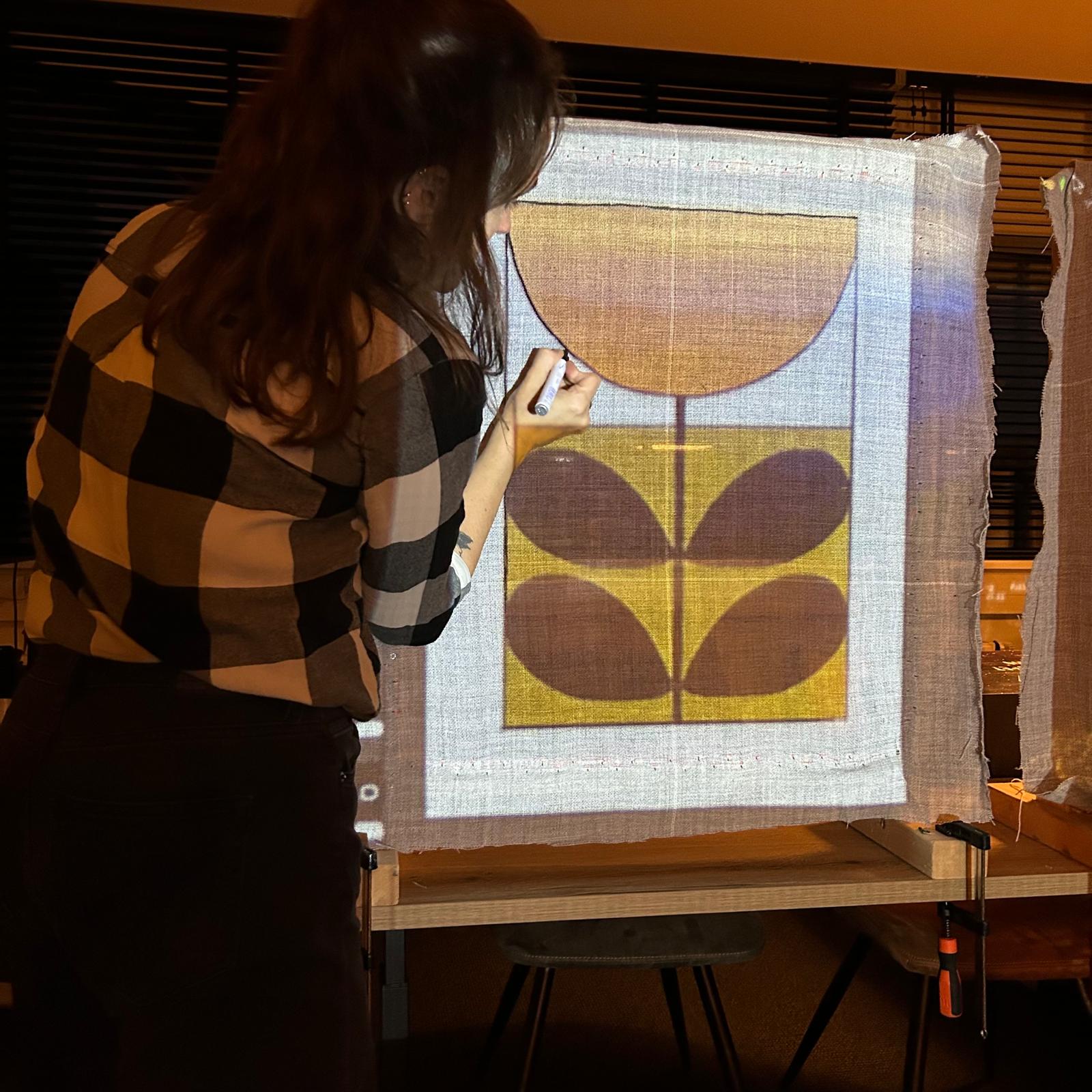 - Met een beamer zet je jouw ontwerp op je kleed.